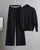 The matching trousers, full-length and relaxed, glide as you move – with a broad, stretch waistband that sits high and smooth, creating the illusion of height and ease all at once. Rich texture and tonal depth add quiet drama, making this set an instant staple for cool-season layering.