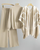 Knitted in a buttery-soft, breathable yarn, this ensemble includes a relaxed-fit top, tailored lounge trousers, and a flowing open-front cardigan. The top features a high neckline and gentle drape that flatters the figure without clinging. The pants offer a high-rise silhouette with a straight leg and elastic waistband, ideal for comfort without sacrificing shape.